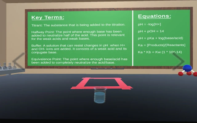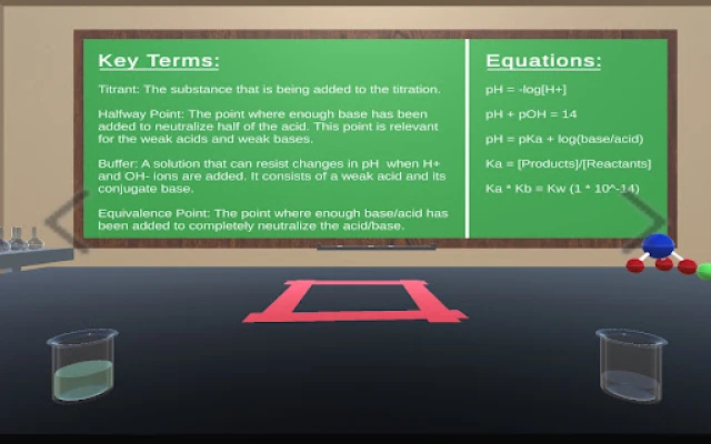 Learning can be a tough process, especially when you are unable to visualise the concepts. That is what this game attempts to resolve: it looks to simulate Acid Bases Titrations, while explaining the ideas to allow for a more interactive and understandable learning experience.