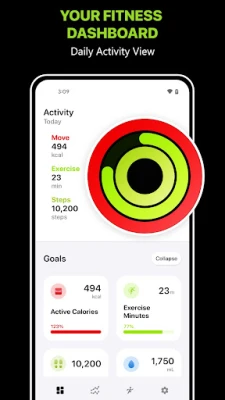 Today’s goals: You can track your daily health goals like Active Calories, Steps, Hydration, Calories Intake, and more.