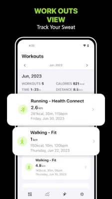 View an overview of all workouts by type or by date. See your information, including the number of workouts completed, the length of each session, the distance traveled, and the number of calories burned.