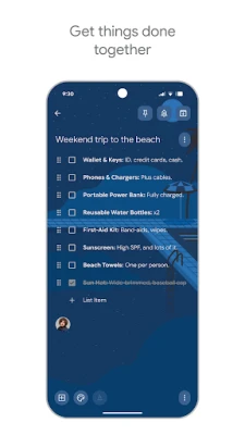 • Manage your grocery list or plan your next trip by sharing your Keep notes with others and collaborating.