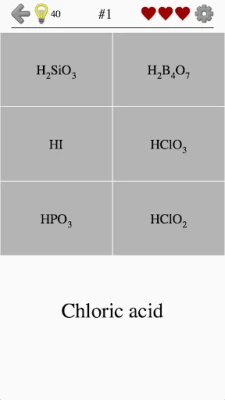 Learn names and formulas of all important inorganic acids, polyatomic ions and their salts. An app is suitable for everyone: from high school students to chemistry professors.