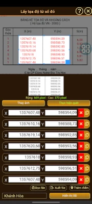 - Xem vị trí sổ đỏ, sổ hồng trên bản đồ, thông qua chức "Sổ đỏ" để Quét tập hợp điểm tọa độ bằng Camera trực tiếp, quét điểm tọa độ thông qua ảnh có sẵn trong thư viện ảnh, Quét tọa độ ảnh thông qua công cụ google dịch, hoặc đọc ảnh tọa độ trực tiếp từ tệp *.txt, *.csv