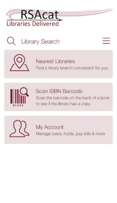Access RSAcat Mobile Catalog from your Android phone or tablet. Manage your account, search the catalog, renew checkouts and place holds.