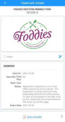 View Trademark Information, Owner Information, Goods & Services, Prosecution history among other details. View Trademark documents for any case. All documents are listed with creation and date and document is displayed as a PDF for easy viewing. Your recent searches are preserved for easy access. Trademarks are displayed with most recent searches on the top of the list.